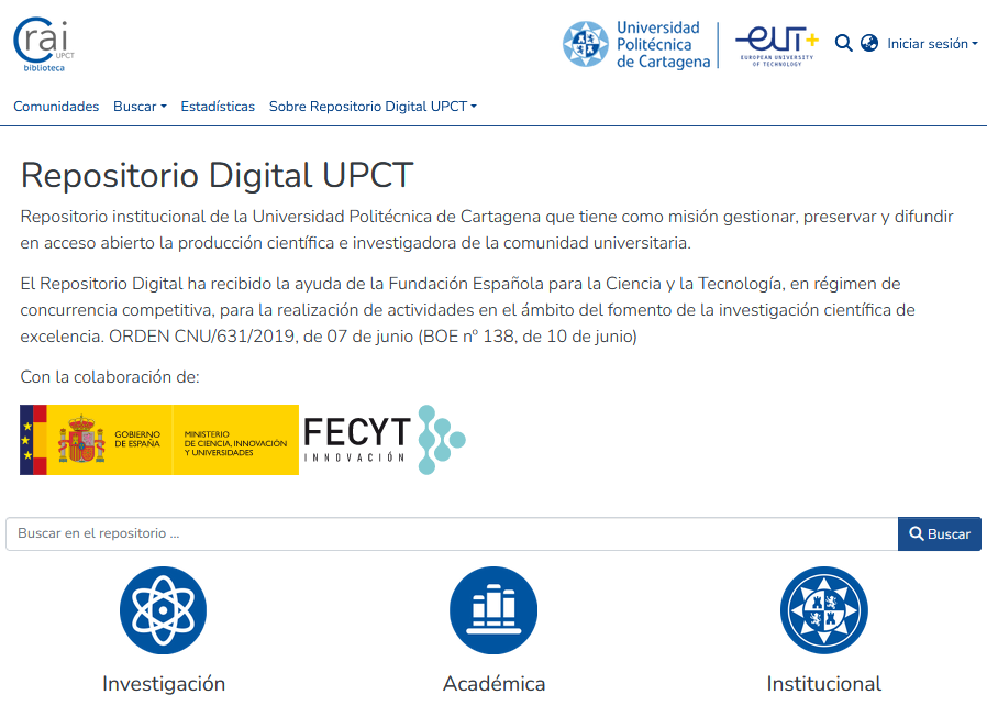 El Repositorio Digital UPCT ha participado de manera voluntaria, junto con otros 14 repositorios, en una prueba piloto en el primer proceso de evaluación de repositorios de acceso abierto de RECOLECTA.
